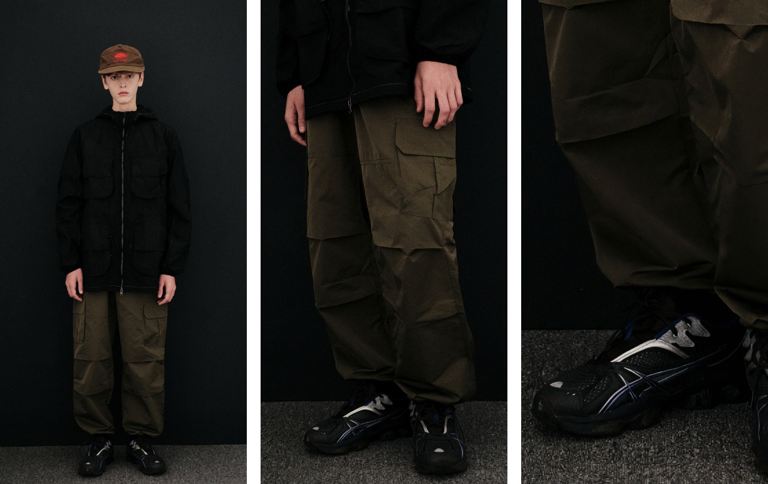 티브 한 무드와 실용성을 동시에 갖춘 나일론 카고 밴딩 팬츠입니다.