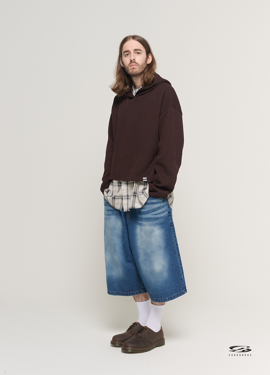 HOOD CROP LAYERED LONG-SLEEVE KNIT (BROWN)