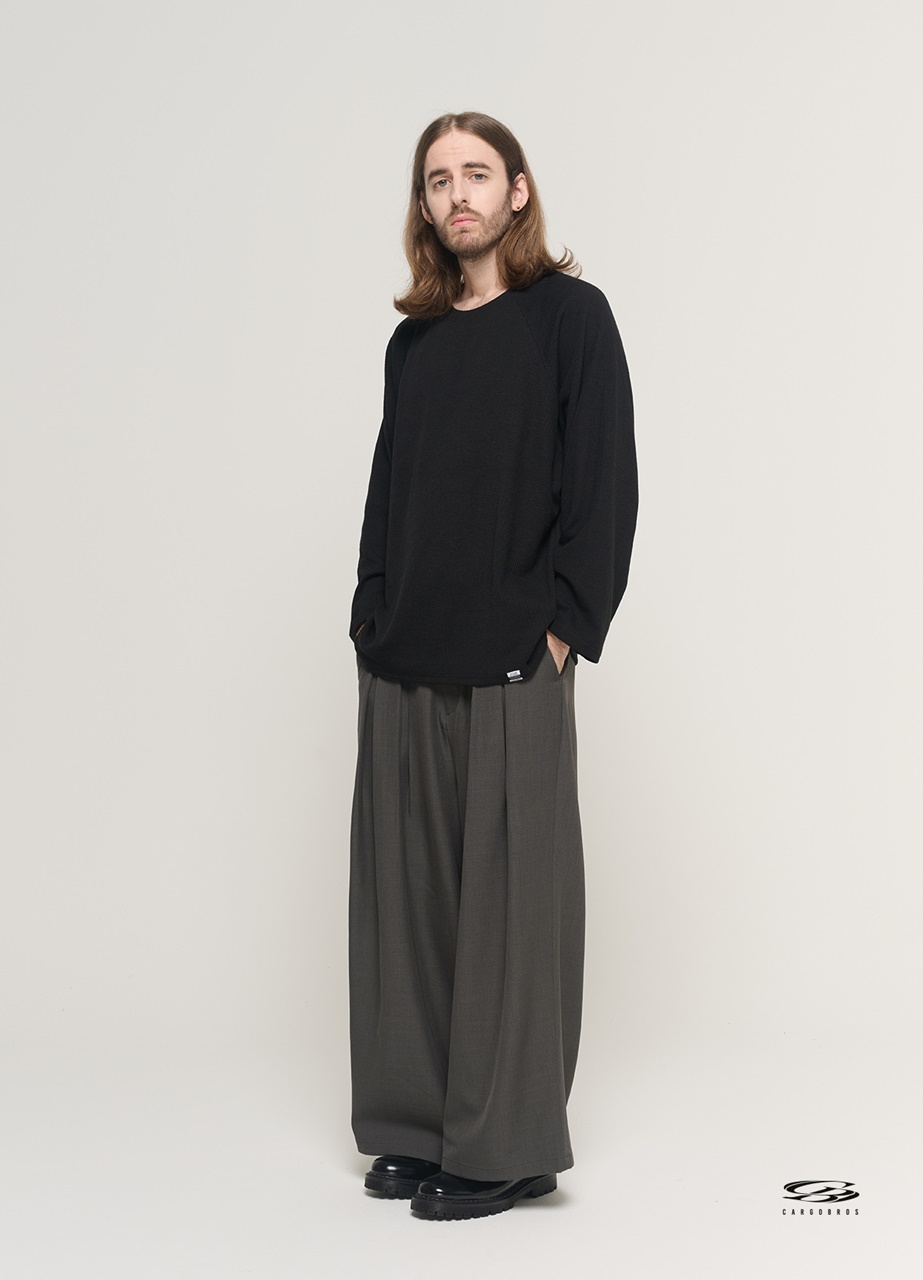 SOFT RAGLAN LAYERED LONG-SLEEVE KNIT (BLACK)