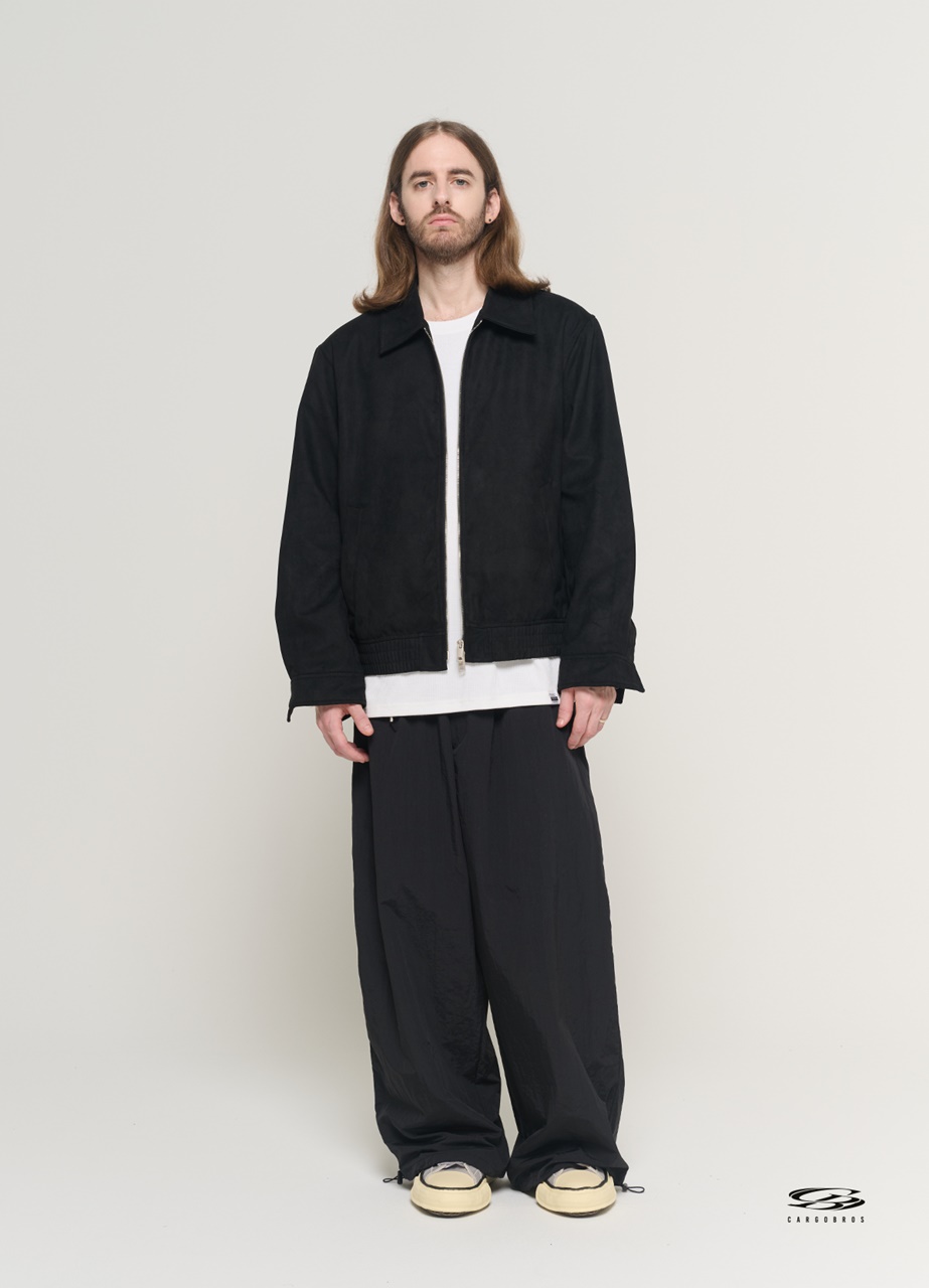NYLON LOOP STRING WIDE PANTS (BLACK)