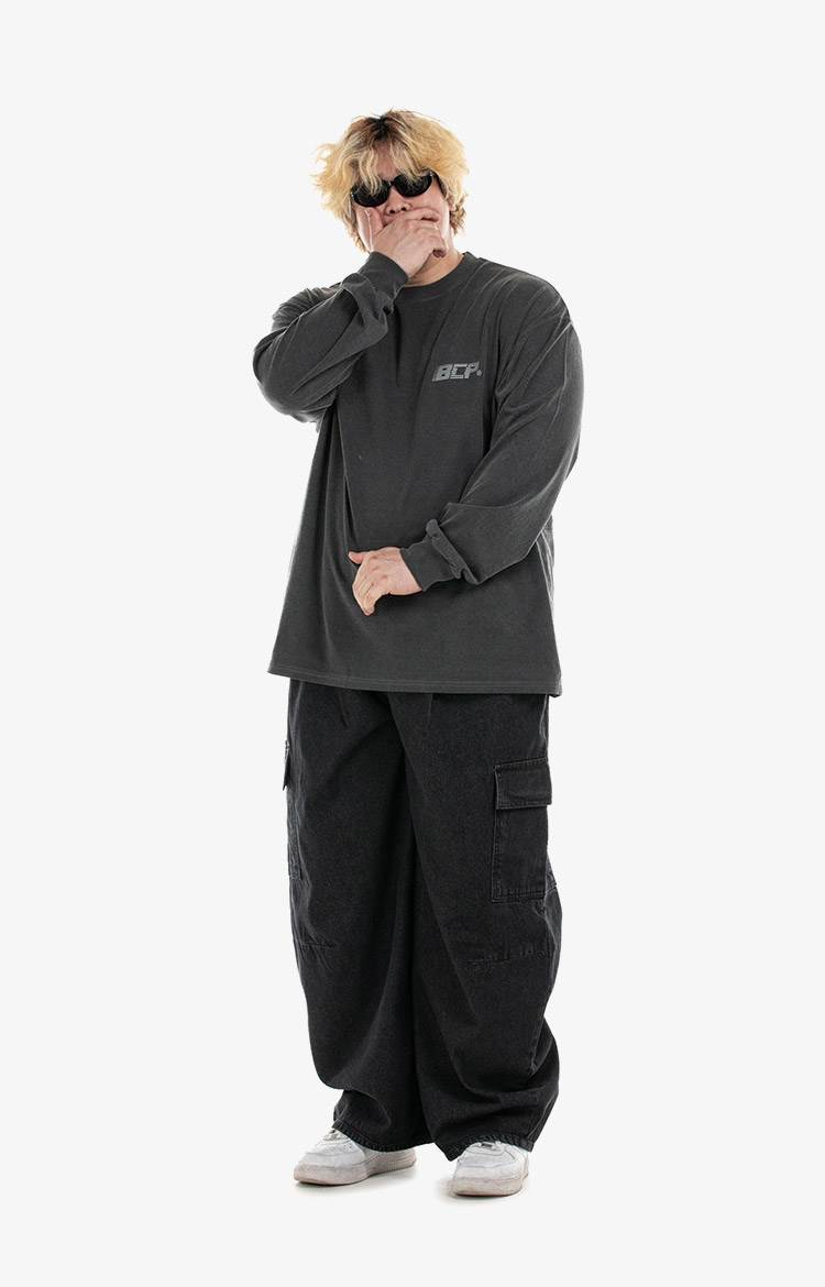 BC 절개 스티치 와이드 데님팬츠 (VINTAGE BLUE)