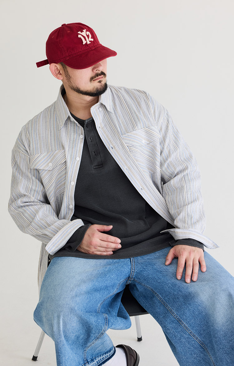 믹스 스트라이프 투포켓 셔츠 스트라이프 블루