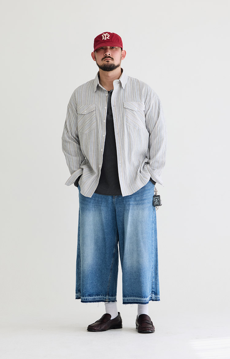 버뮤다 워시드 와이드 하프 데님 팬츠