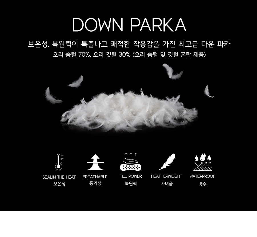 | 소재 | 겉감 : 나일론 100% 안감 : 폴리에스터 100% 충전재 : 오리 솜털 70%, 오리 깃털 30%(오리 솜털 및 깃털 혼합 제품)  |