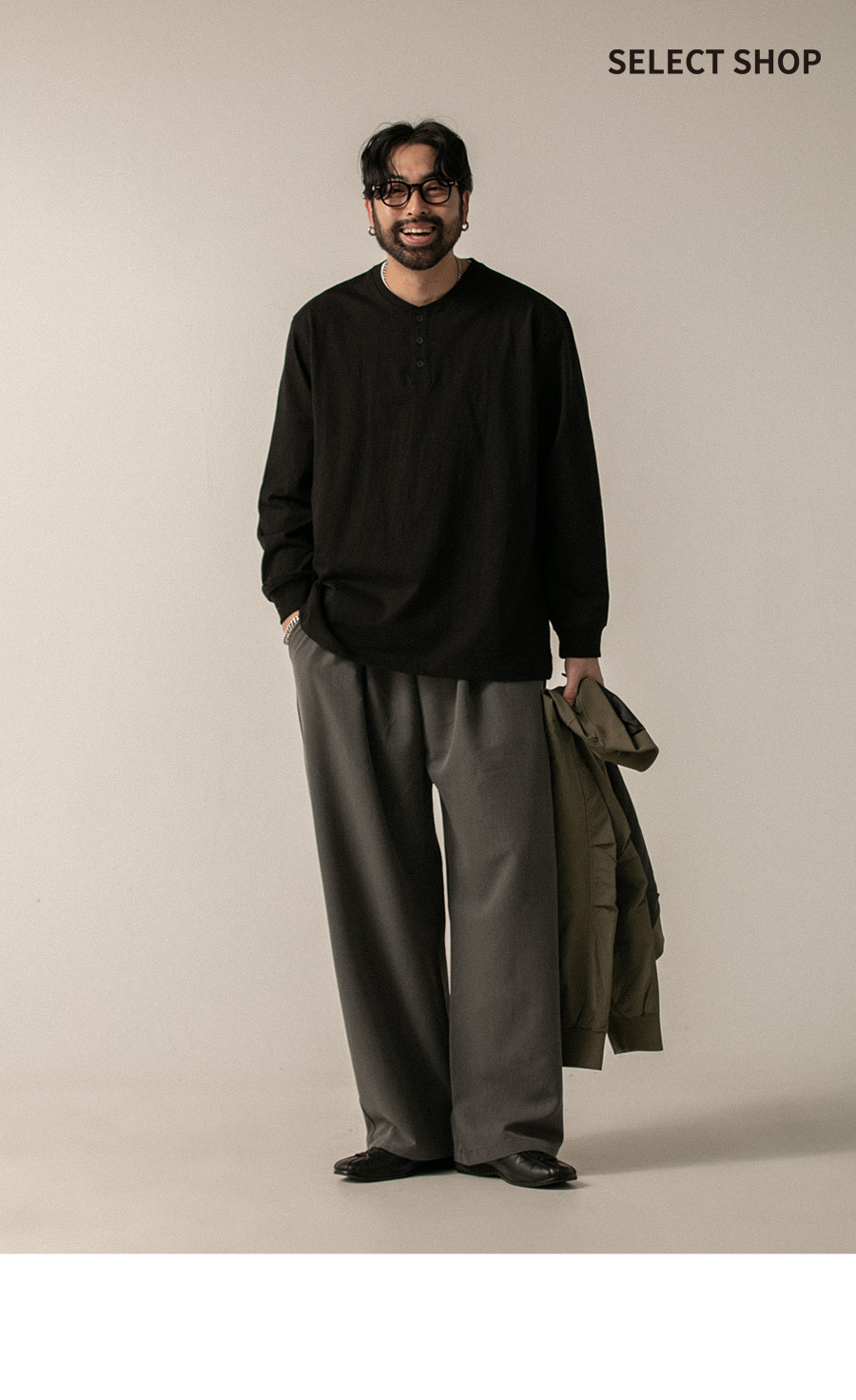 ⦁ 실루엣 : 전체적으로 여유 있게 떨어지는 와이드핏 실루엣