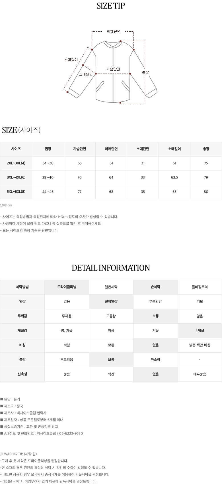 세탁방법및 취급시 주의사항 상세설명참조