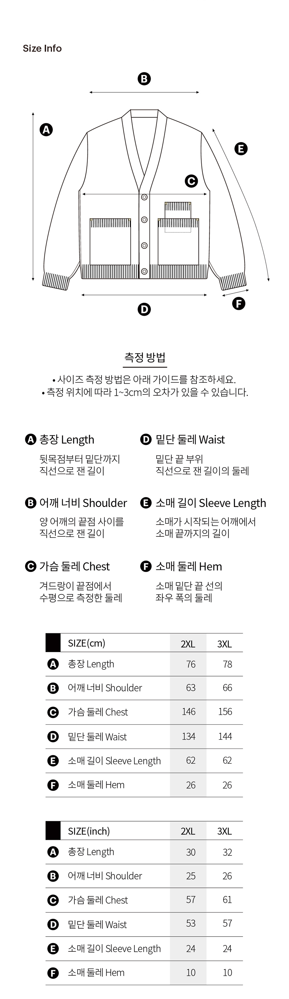 - 사이즈는 측정방법에 따라 1~3cm 정도의 오차가 있을 수 있습니다.
