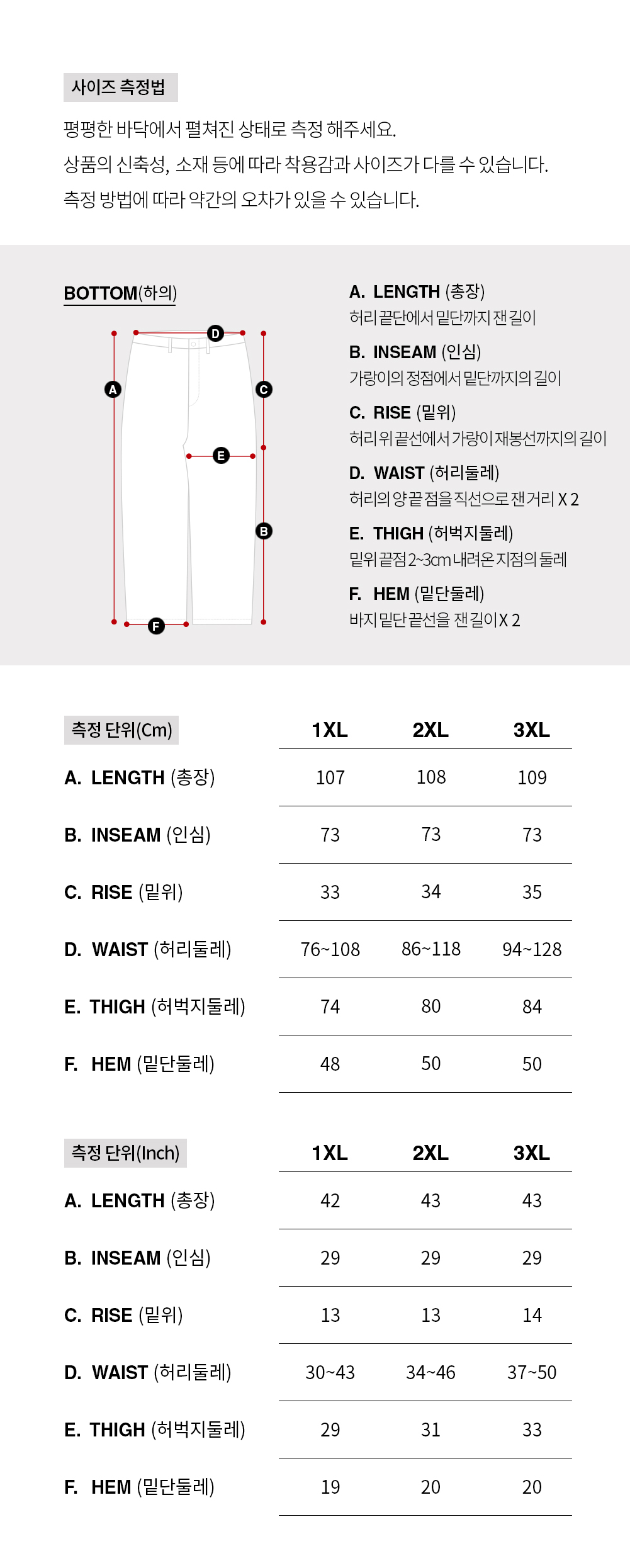 - 4XR은 아래의 측정 기준에 따라 각 제품의 실측을 측정하고 있습니다.