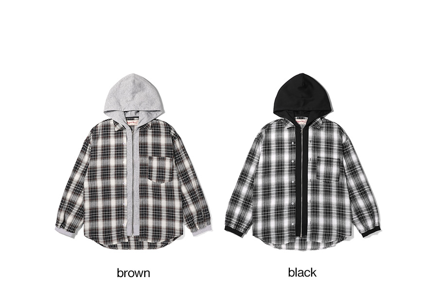 프리드 오버핏 후드 체크 집업 셔켓 2컬러