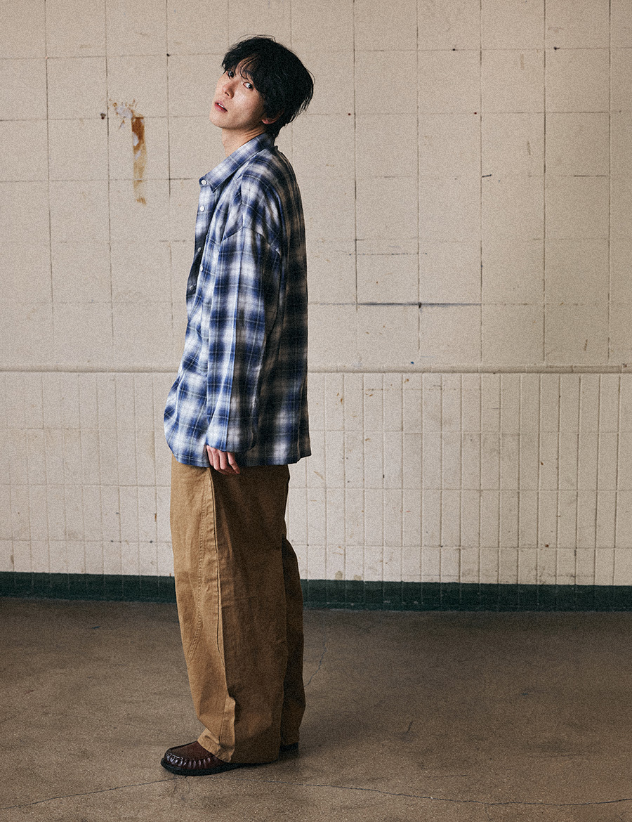 ⦁ 1940년대 미군 필드 트라우저를 현대적으로 복각한 커브드 시임 와이드 팬츠.