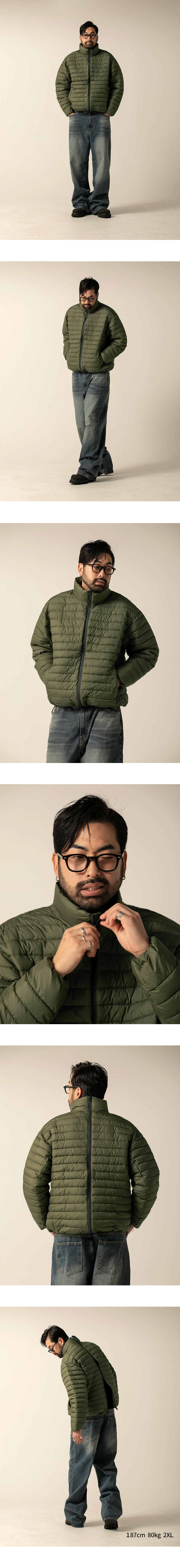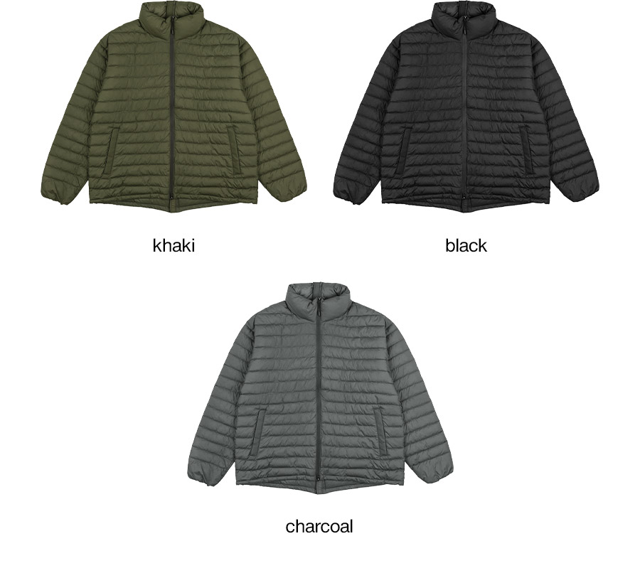 ⦁ 겉감은 가벼운 폴리 소재를 사용하고 따뜻한 충전제를 넣어 보온성이 우수한 경량 패딩입니다.