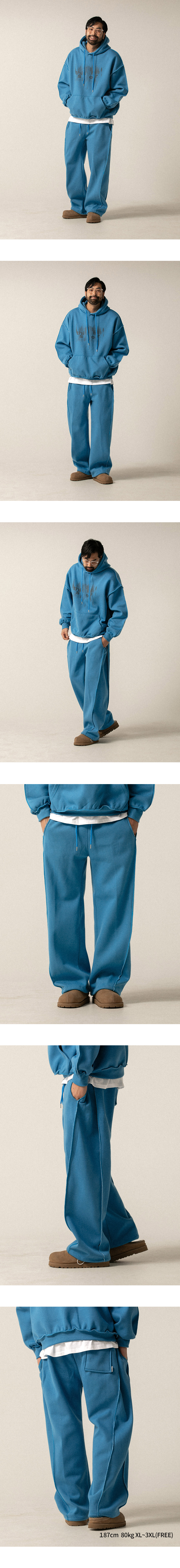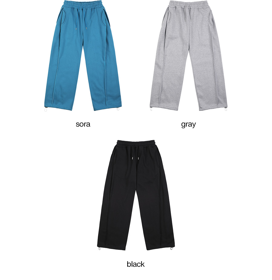 ⦁ 밑단 조절끈(스트링)이 내장되어 있어 취향에 따라 와이드한 일자 핏이나 볼륨감 있는 조거 핏으로 자유롭게 변형이 가능합니다.