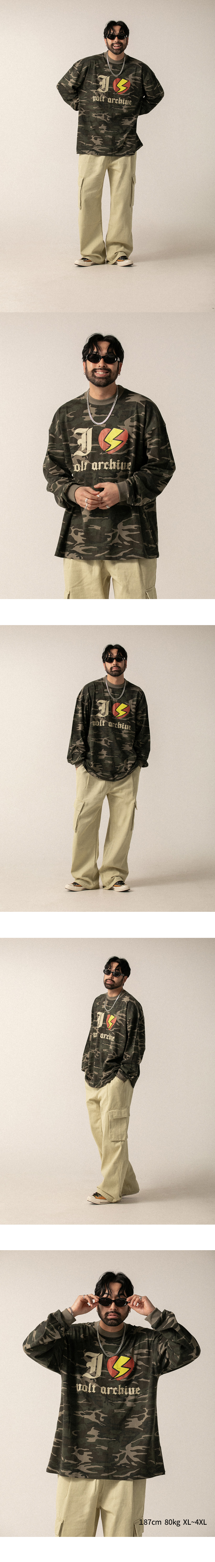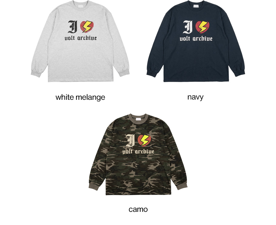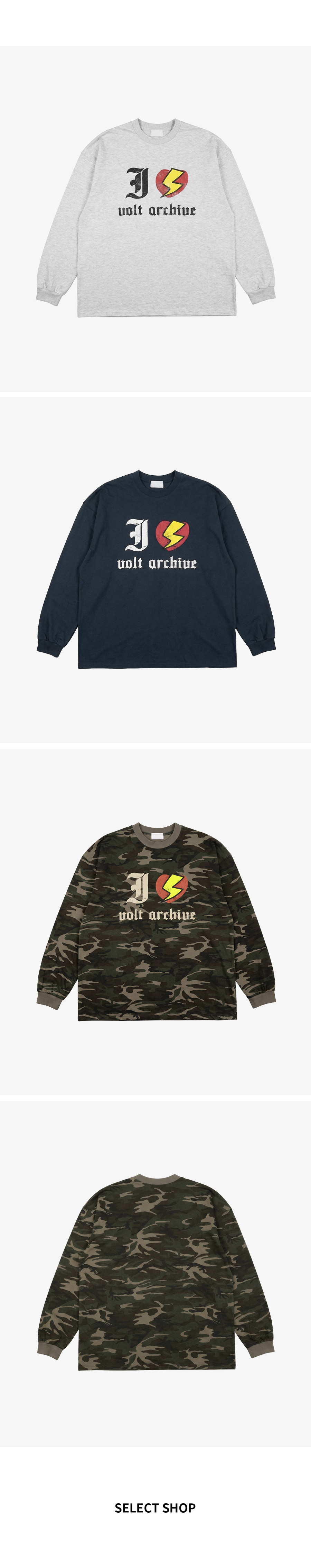 ⦁ 가슴 중앙에 고딕체 이니셜과 번개 하트 그래픽을 조합한 유니크한 프린트가 시선을 사로잡는 오버핏 롱슬리브입니다.