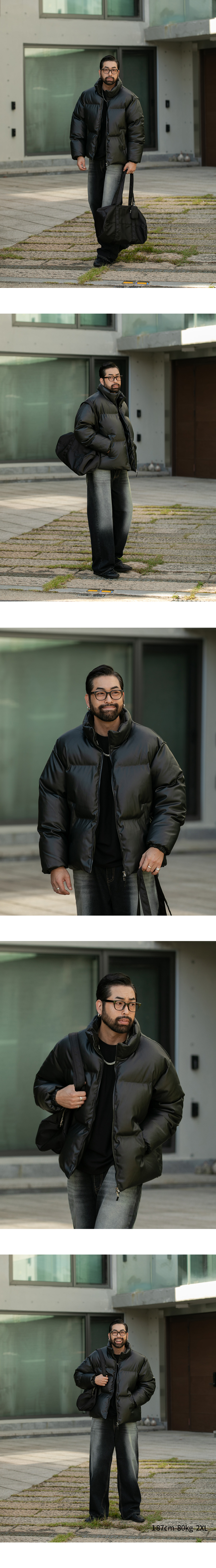 캐주얼 하게 어디에나 손쉽게 코디하기 좋고 편안함을 갖춘 인조가죽 패딩입니다. 데님 팬츠, 코튼 팬츠 등 여러 하의와 스타일링이 가능하고 폭넓은 사이즈로 다양하게 입으실 수 있습니다.