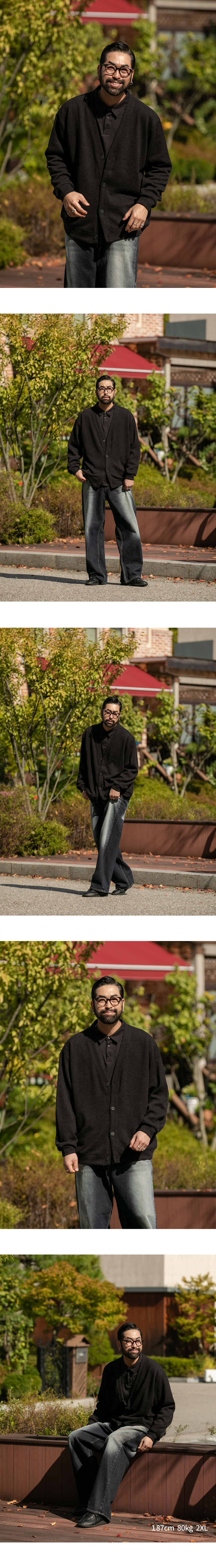 ⦁ 드롭 숄더 기반의 넉넉한 오버핏 실루엣으로 제작되어 트렌디한 무드를 더하며 편안한 데일리룩에 최적화된 니트 가디건