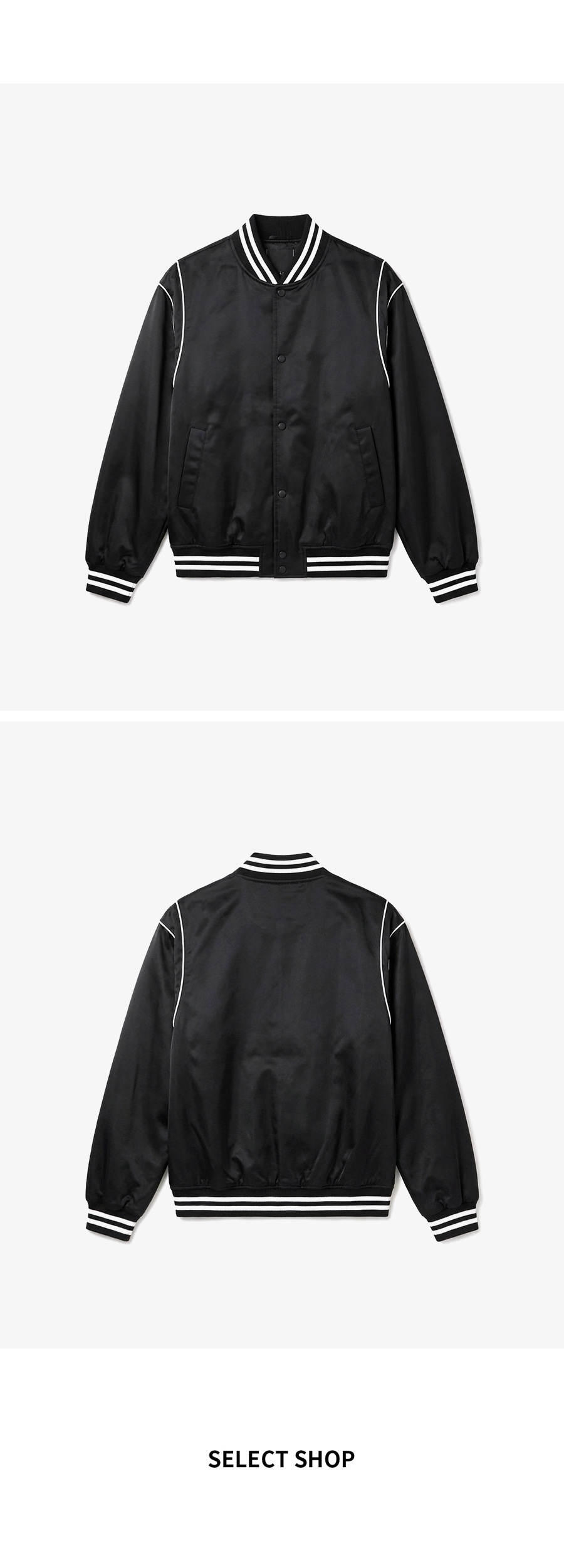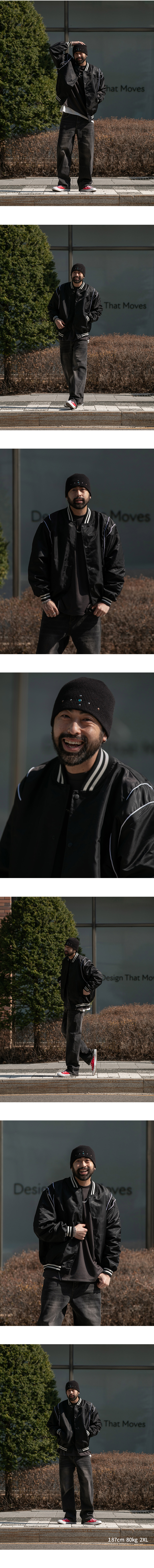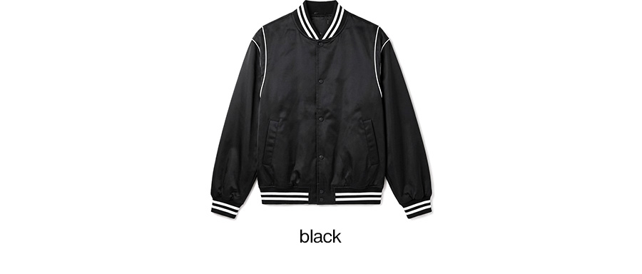 ⦁ 스트라이프 립 마감이 더해져 완성도 있는 바시티 스타일을 연출합니다.