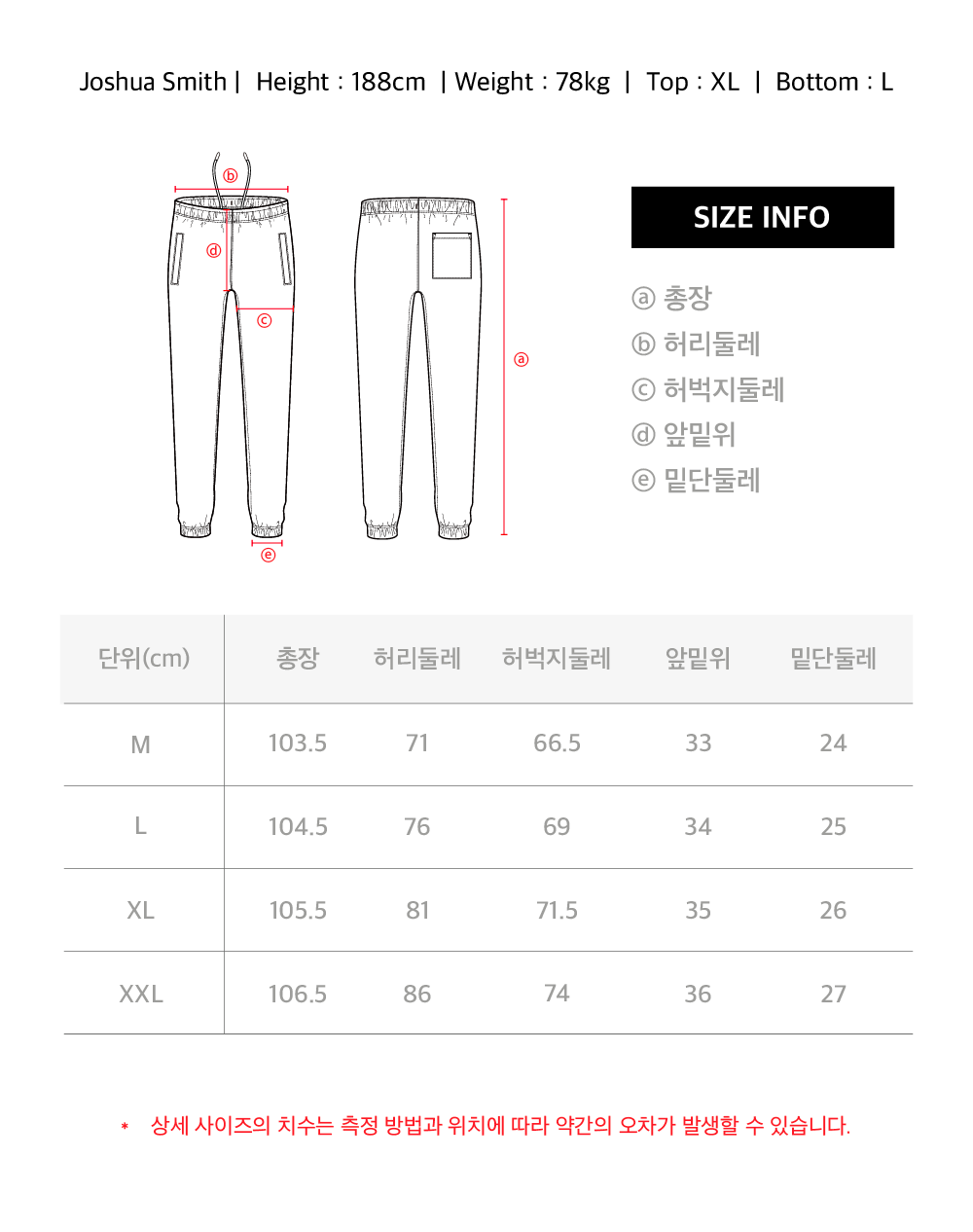 - 4XR은 아래의 측정 기준에 따라 각 제품의 실측을 측정하고 있습니다.