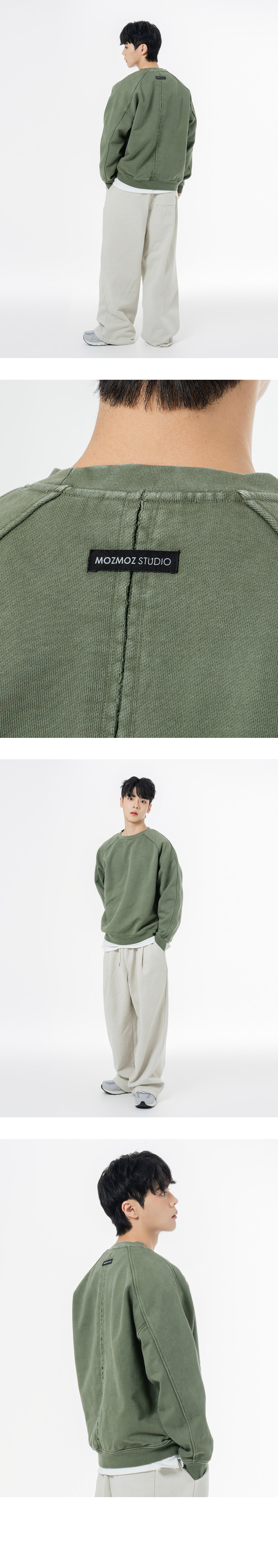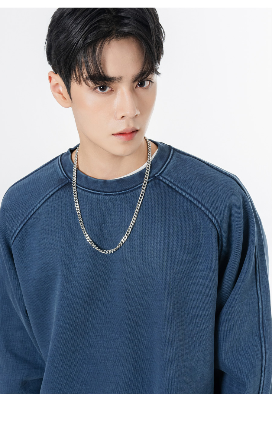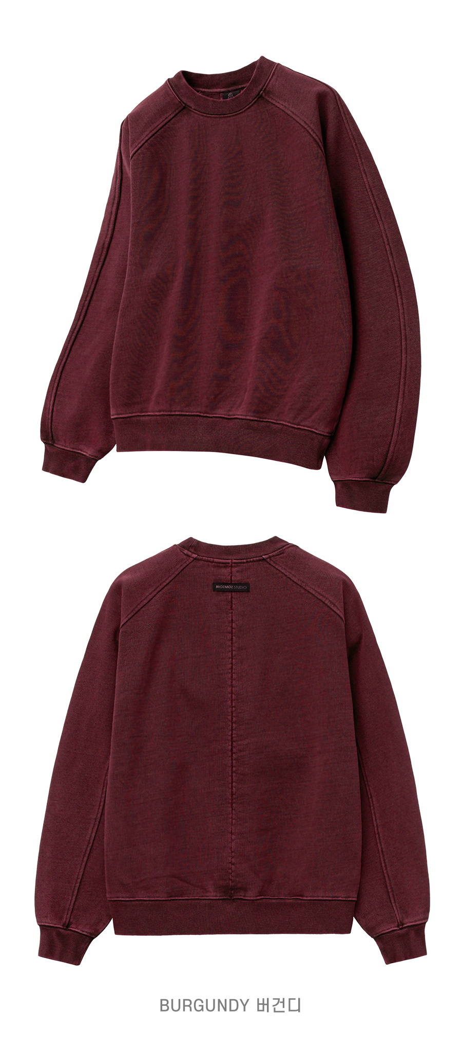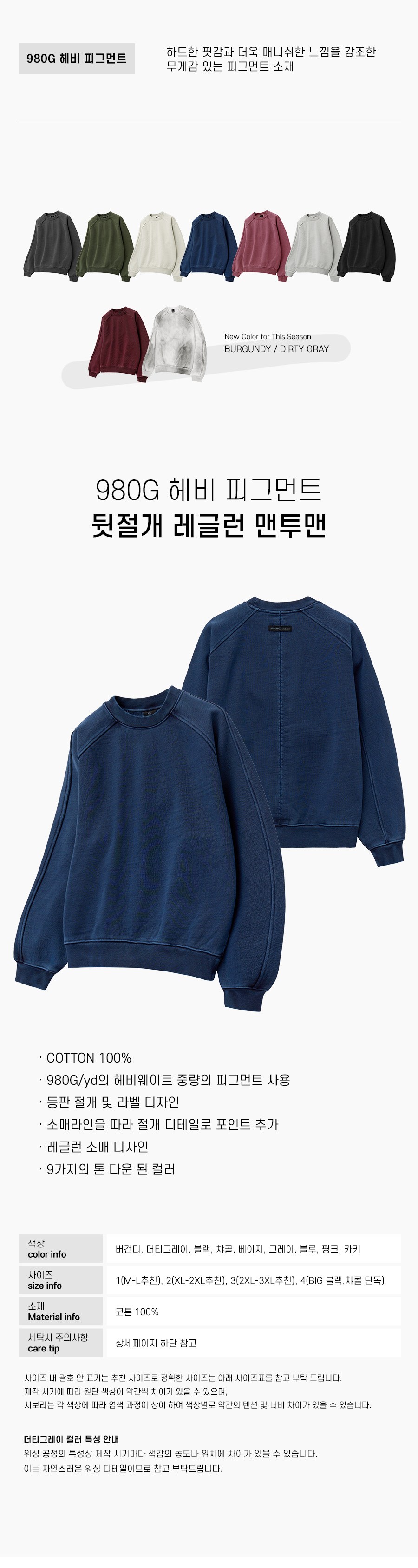 헤비 웨이트 피그먼트 나그랑 뒷절개 오버핏 맨투맨 블루