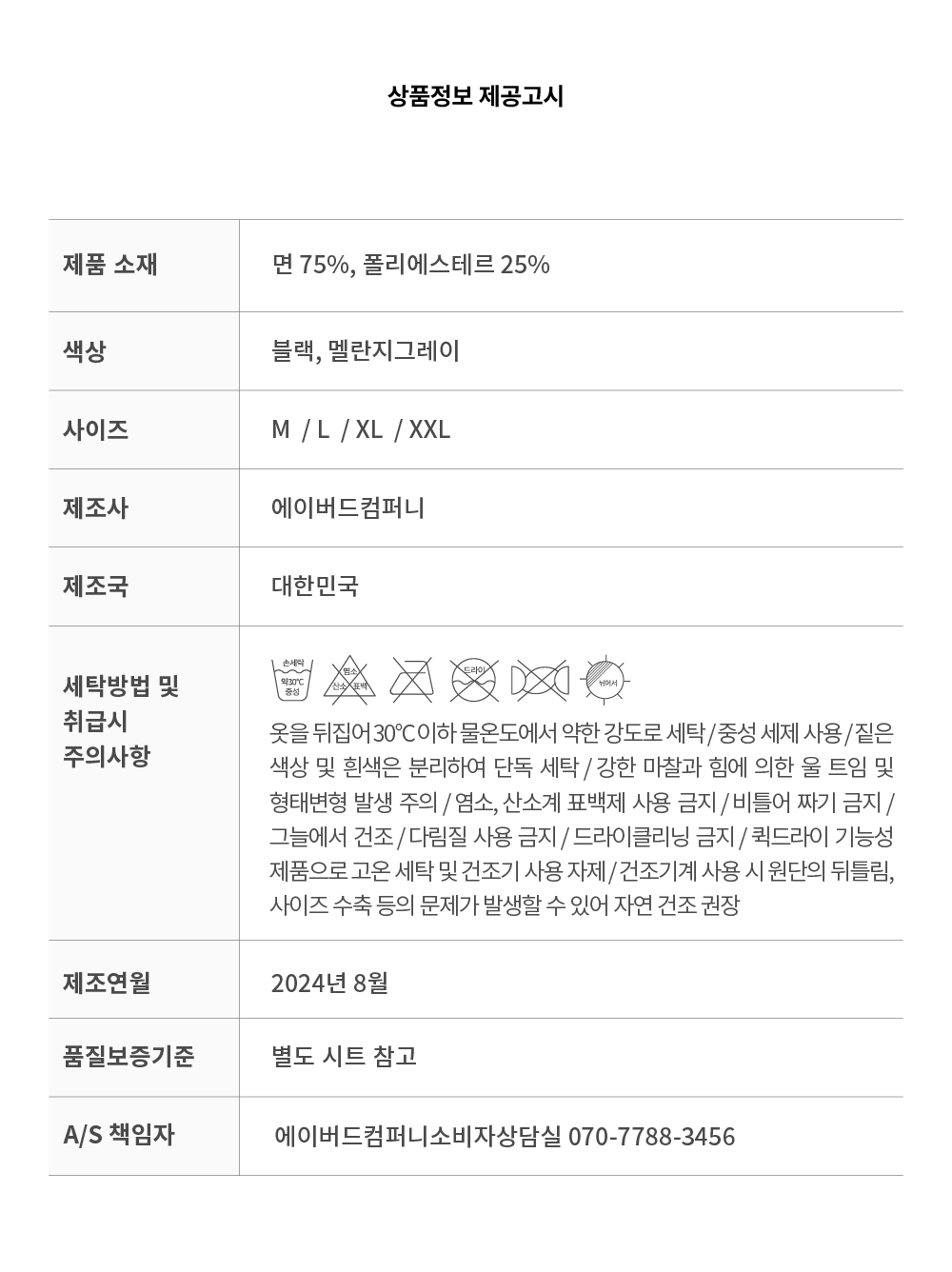 | 소재 | 상세설명참조 | A/S 책임자 | 상세설명참조 |
