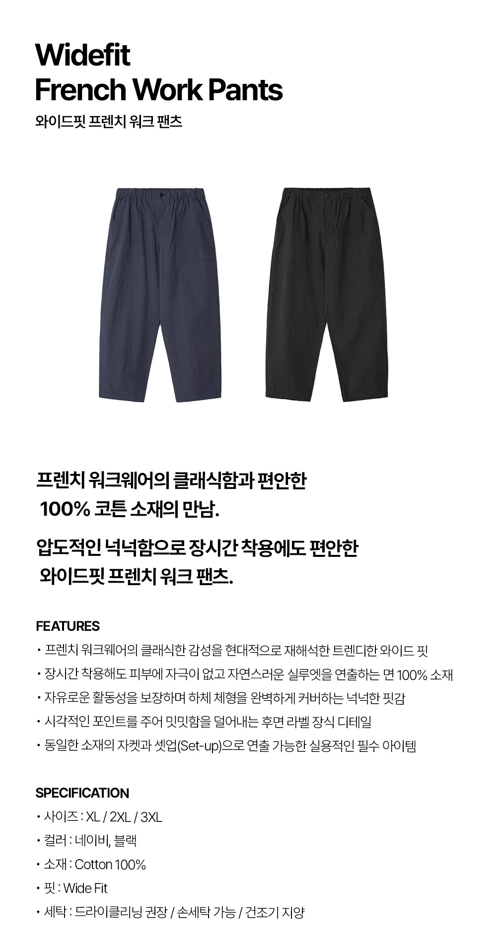 와이드핏 프렌치 워크 팬츠
