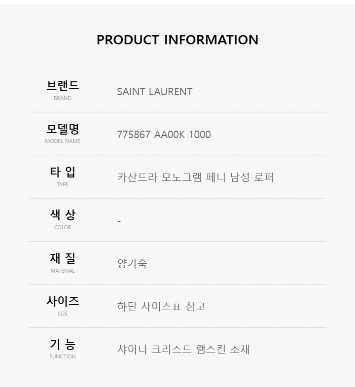 | 브랜드 | 생로랑 | 사업자번호 | 629-86-02588 | ohbohwa0520@naver.com | |