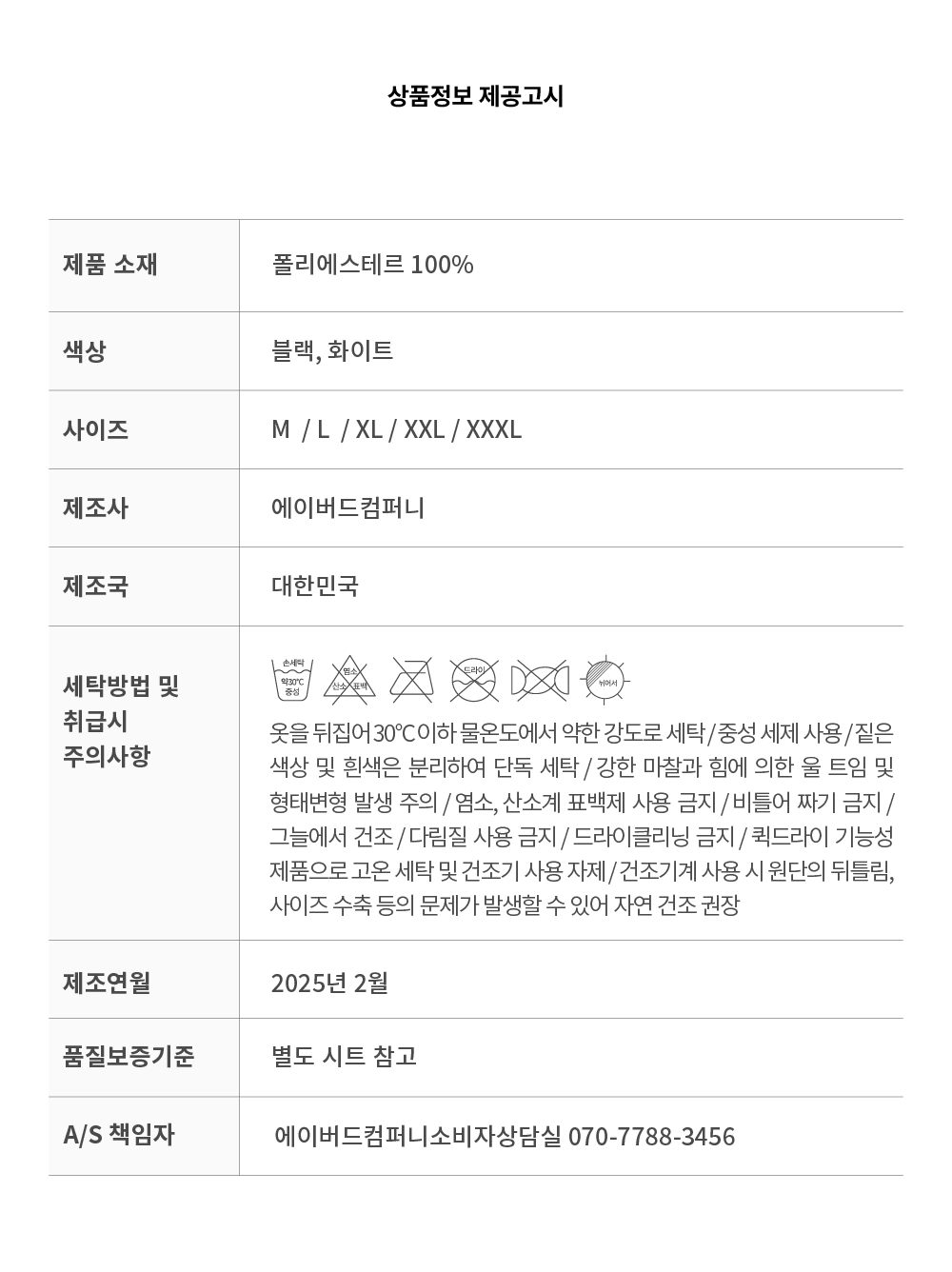 | 구분 | XS | S | M | L | XL | 2XL | 3XL | 4XL |