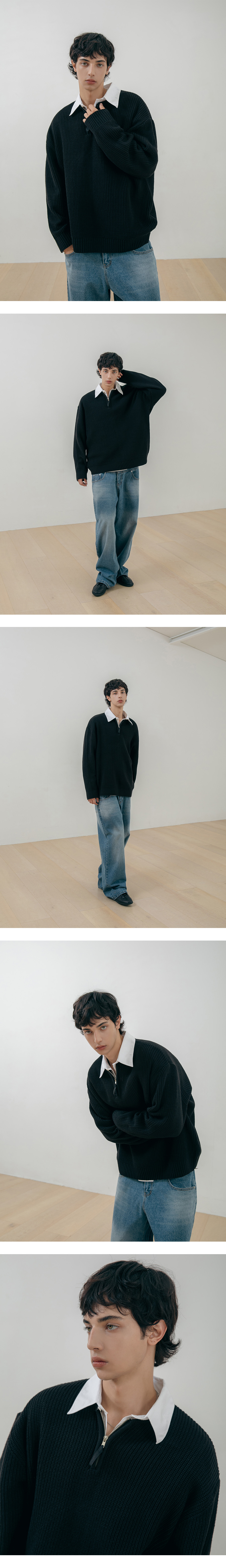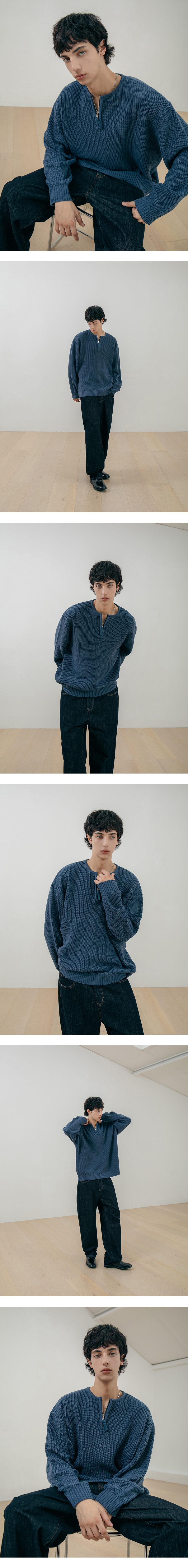 ⦁ 라운드넥 반집업 디테일
