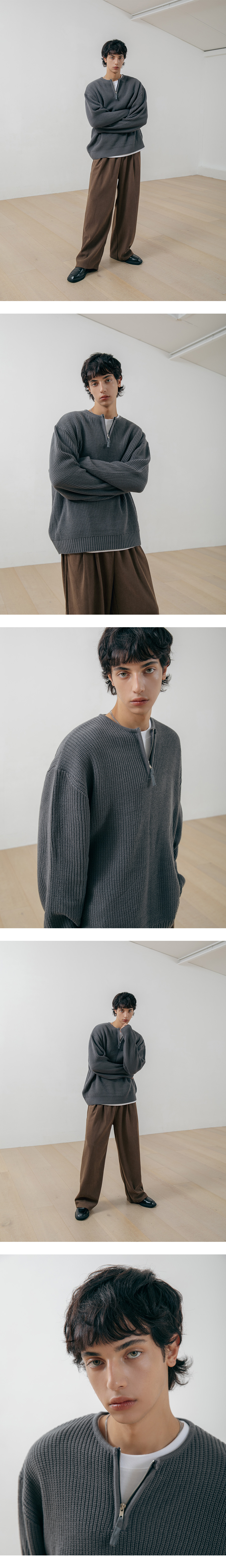 반집업 라운드 니트 그레이
