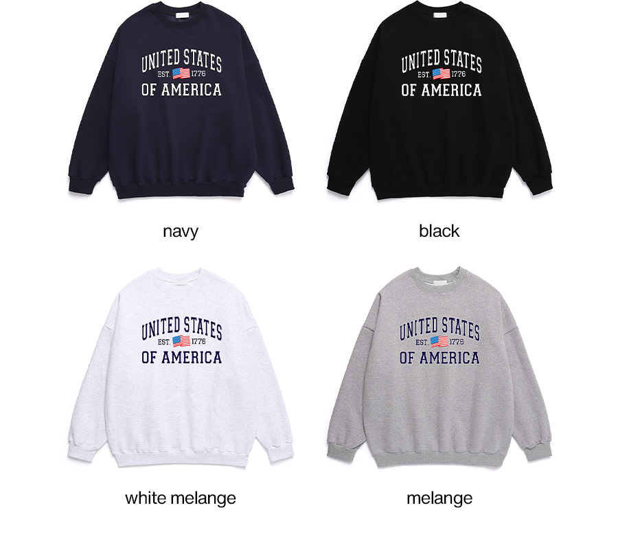 3단쭈리 코튼 100% 원단에 텐타 덤블 가공을 더해 세탁 후 수축이나 틀어짐을 줄였으며, 부드러우면서도 견고한 착용감을 제공합니다. 넉넉한 오버핏 실루엣은 남녀 모두에게 자연스러운 루즈핏을 연출해주며, 전면에 배치된 4도 나염 ‘UNITED STATES OF AMERICA’ 그래픽과 성조기 포인트가 레트로한 감성을 완성합니다. 베이직한 네 가지 컬러 구성으로 데일리 아이템으로 손색없는 제품입니다.