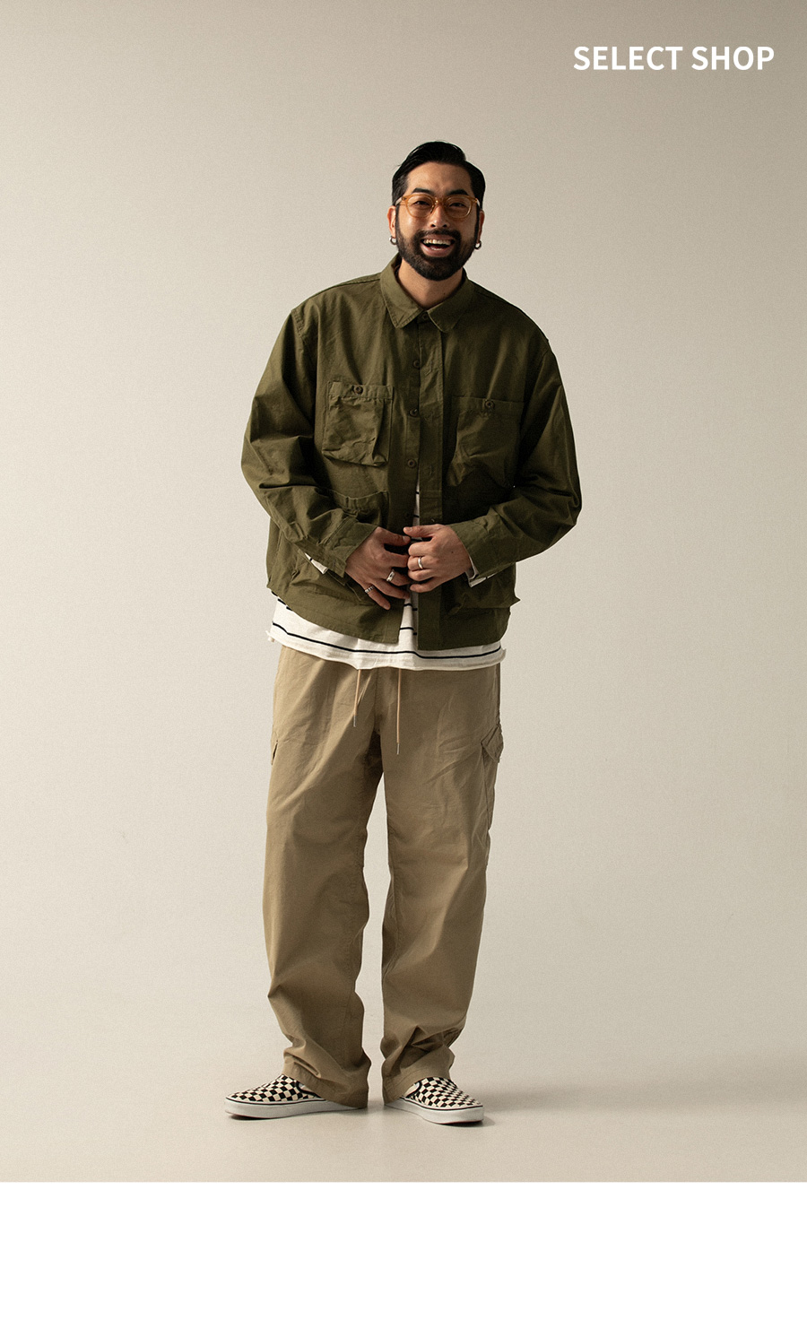 ⦁ 양쪽에 모양과 크기가 다른 언밸런스 포켓 디테일로 유니크한 포인트 강조