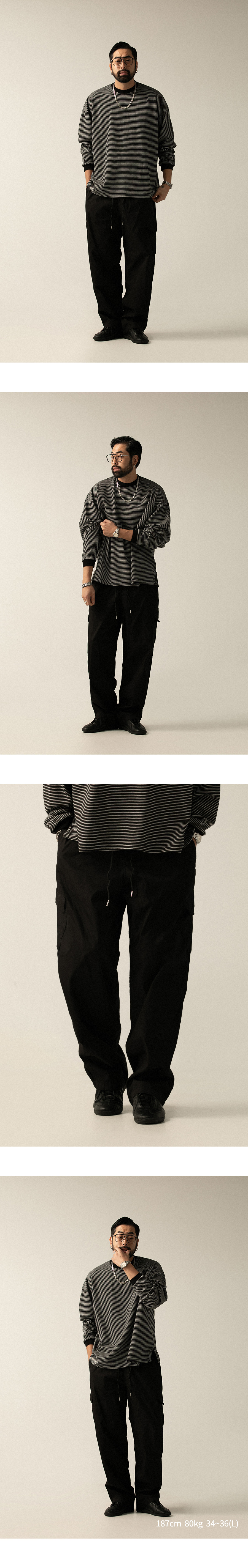 ⦁ 허리 전체 밴딩과 드로스트링, 밑단 드로스트링으로 핏 조절 가능