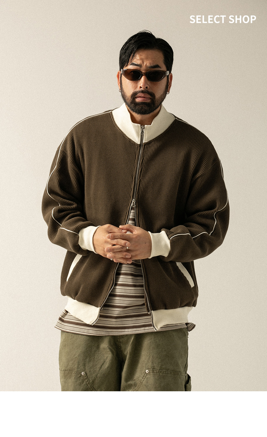 ⦁ 도톰하고 탄탄한 와플(벌집) 조직의 코튼 혼방 소재를 사용하여 뛰어난 보온성과 고급스러운 텍스처 제공