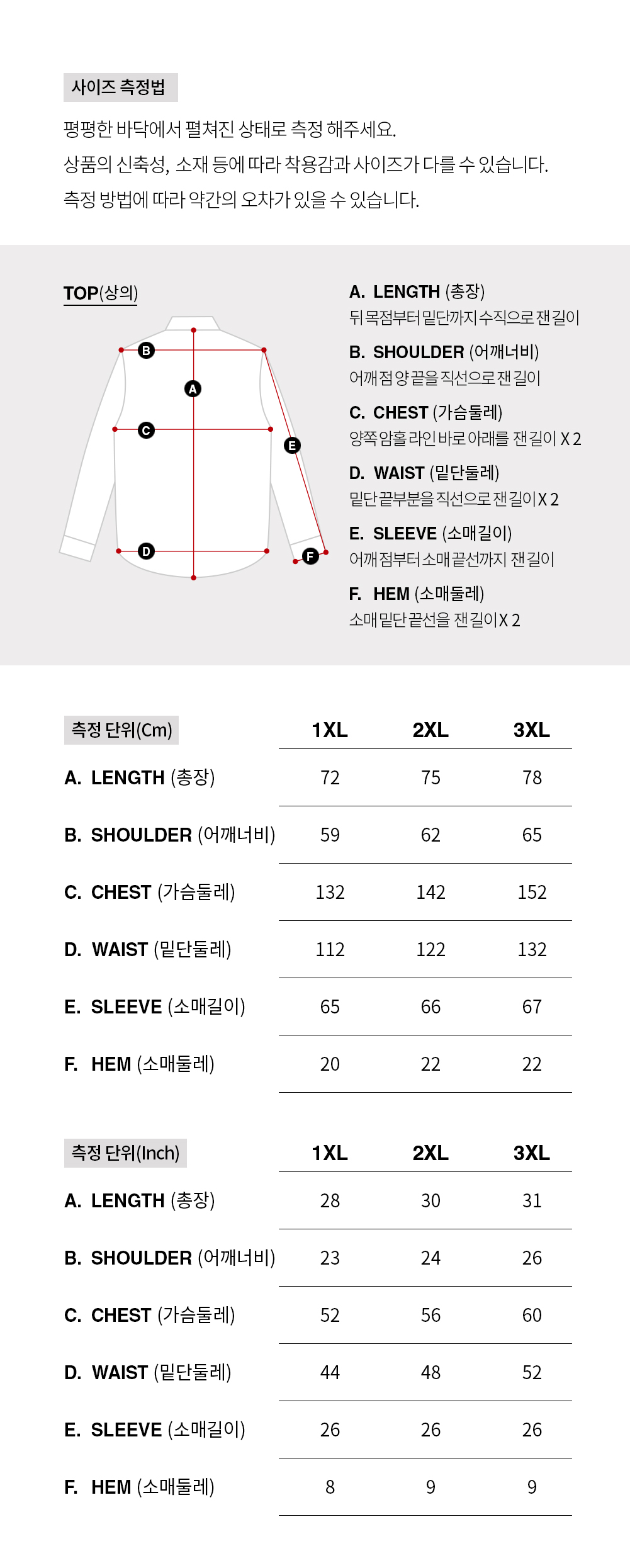 - 4XR은 아래의 측정 기준에 따라 각 제품의 실측을 측정하고 있습니다.