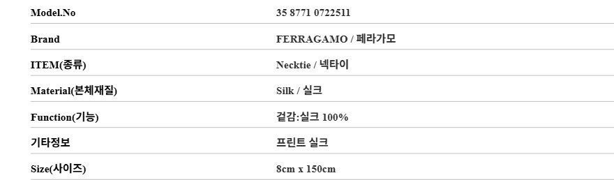 3. 치수 | SIZE - 8cmx150cm | 4. 제조사 | 페라가모/(주)오보화-병행수입 |