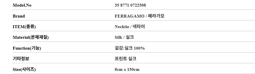 3. 치수 | SIZE - 8cmx150cm | 4. 제조사 | 페라가모/(주)오보화-병행수입 |