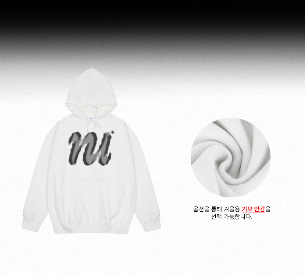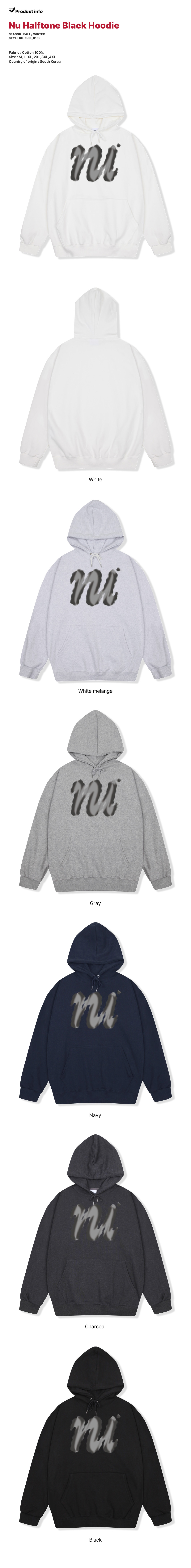 [논기모/기모][국내생산] 오버핏 빅사이즈 남녀공용 nu하프톤블랙심볼 후드티 6color