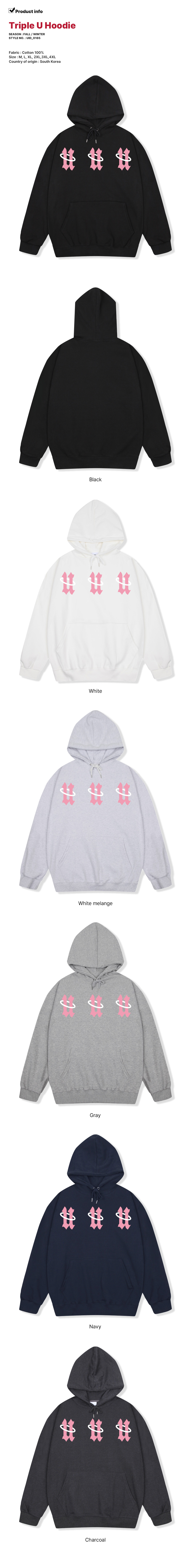 [논기모/기모][국내생산] 오버핏 빅사이즈 남녀공용 트리플u 후드티 6color