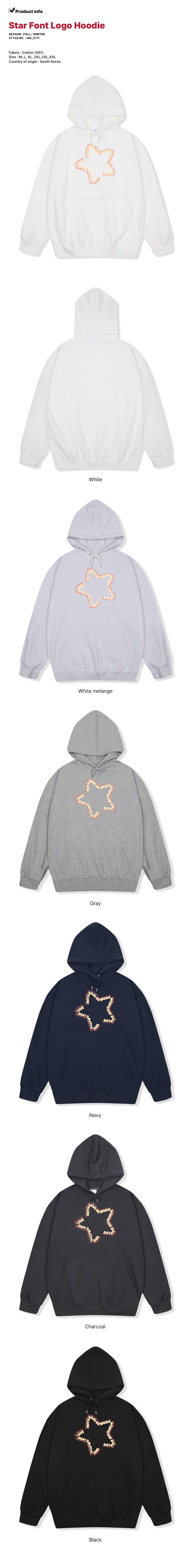 [논기모/기모][국내생산] 오버핏 빅사이즈 남녀공용 스타폰트로고 후드티 6color
