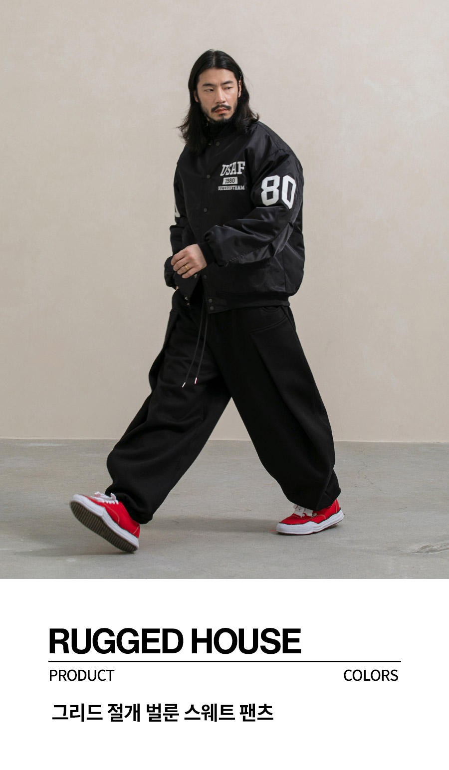 그리드 절개 벌룬 스웨트 팬츠 2컬러