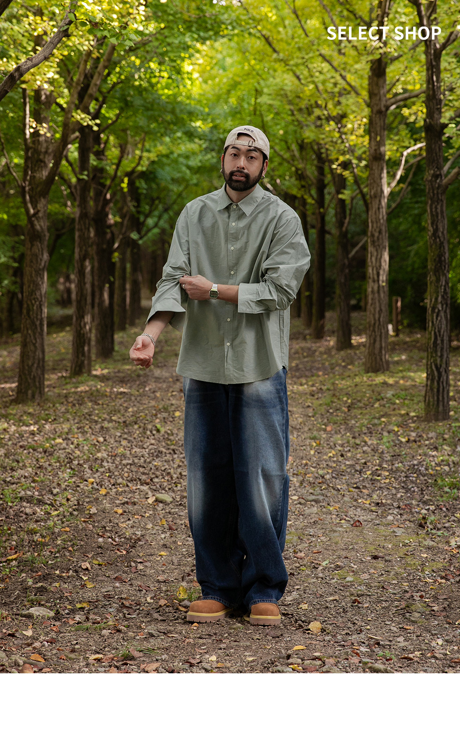 ⦁ 미니멀한 상의나 오버핏 셔츠와 매치하여 스트리트 캐주얼, 아메카지 등 다양한 무드로 스타일링하기 좋은 핵심 데님 아이템