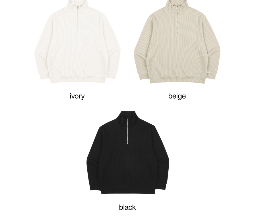 ⦁ 부드러운 터치감의 폴리에스터 소재로 제작된 오버핏 실루엣의 반집업 맨투맨입니다.