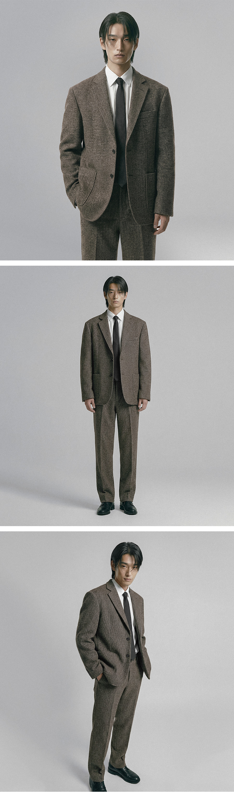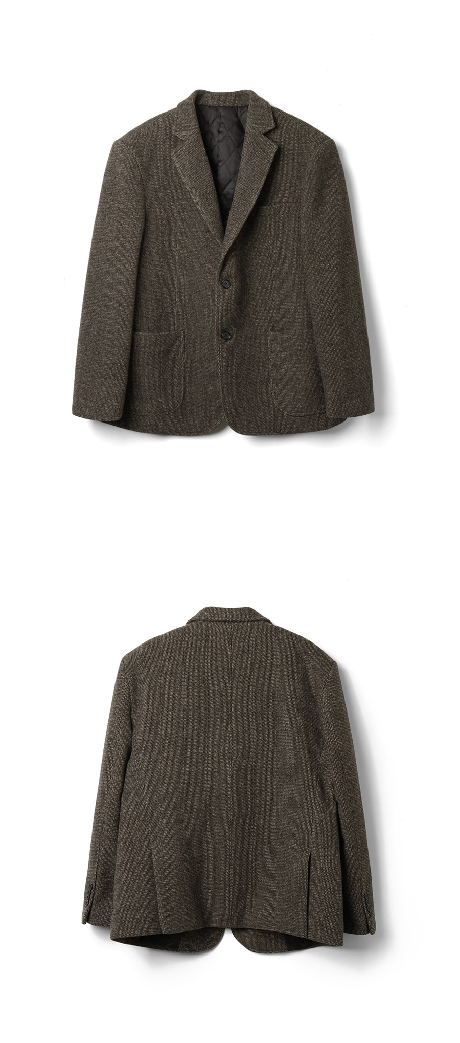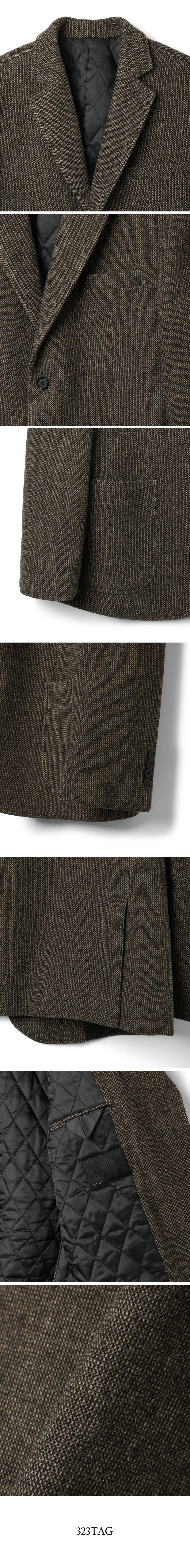 브라운 : 겉감 : 울 54.7% 폴리 34.8% 아크릴 4.2% 레이온 3.4% 나일론 1.5% 코튼 1.4%  / 안감 : 폴리 100% / 충전제 : 코튼100%