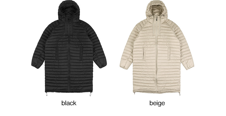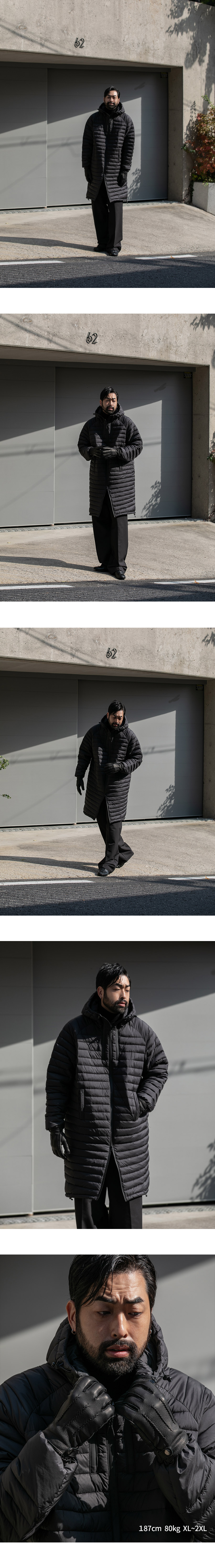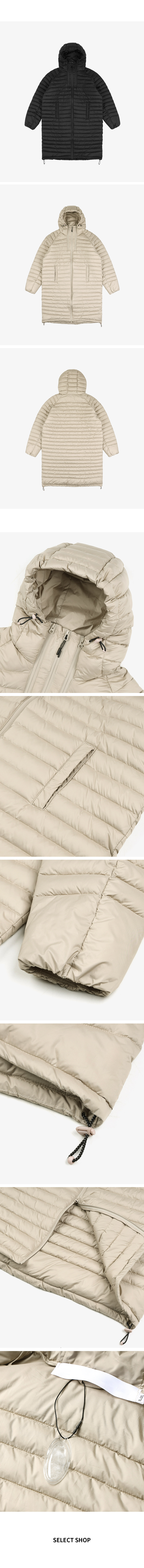 ⦁ 탄탄하고 촉감이 좋은 400T 폴리 원단을 사용하여 고급스러운 느낌을 주는 경량 롱 패딩입니다.