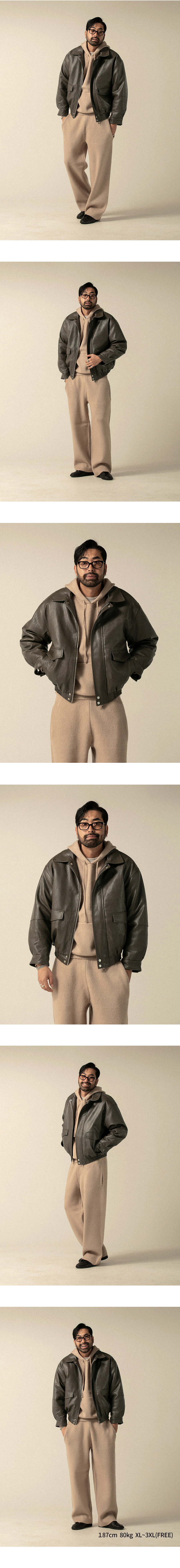 캐주얼 하게 어디에나 손쉽게 코디하기 좋고 편안함을 갖춘 가죽 자켓 입니다. 데님팬츠, 코튼팬츠 등 여러 하의와 스타일링이 가능하고 폭넓은 사이즈로 다양하게 입으실 수 있습니다.