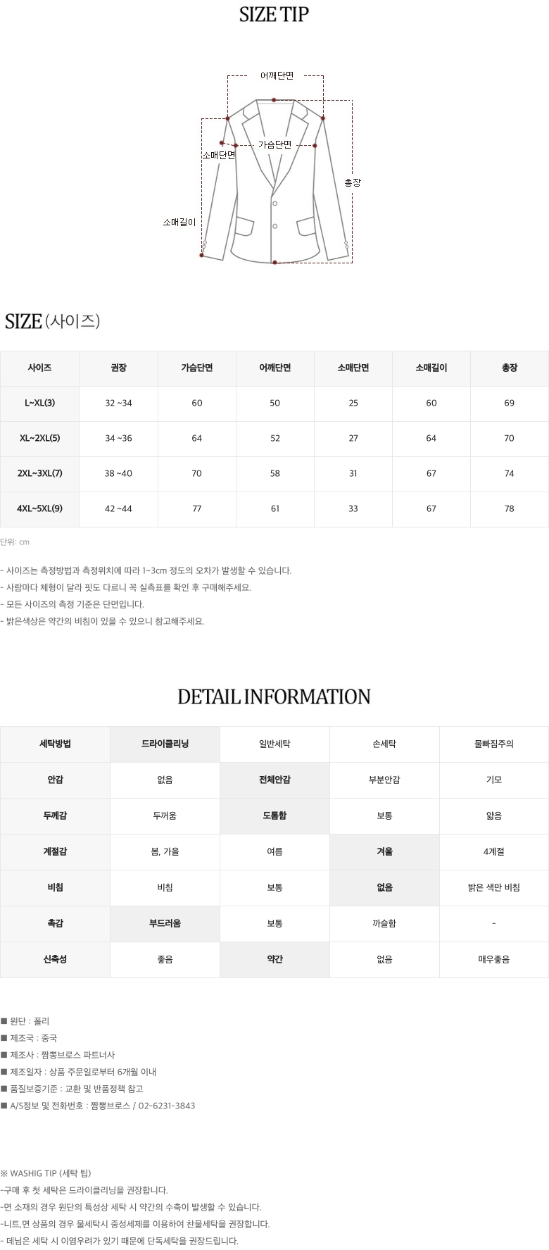 | 세탁방법및 취급시 주의사항 | 상세설명참조 | ||