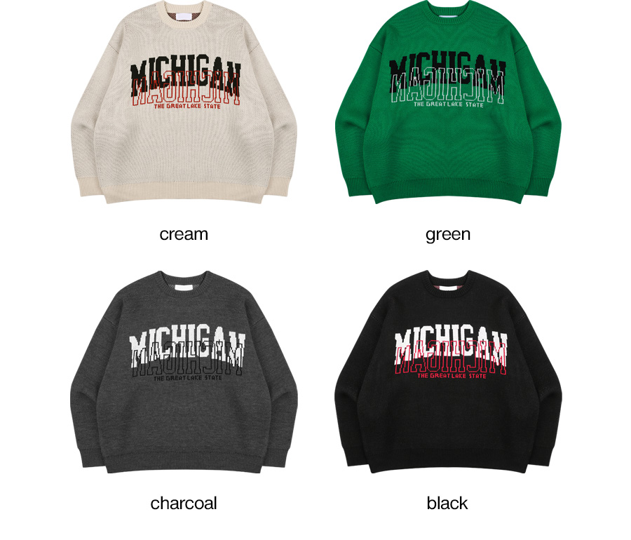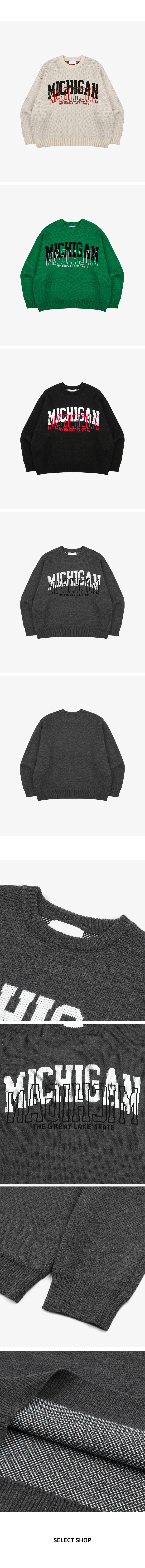 ⦁ 섬세한 니트 짜임으로 미시간 레터링 포인트를 넣어 고급스러운 캐주얼함을 강조했습니다.