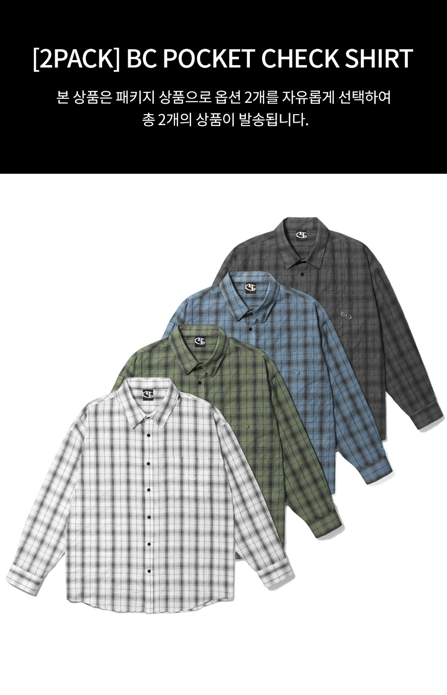 [1+1] BC 포켓 로고자수 체크 셔츠