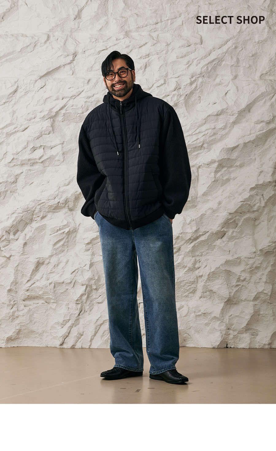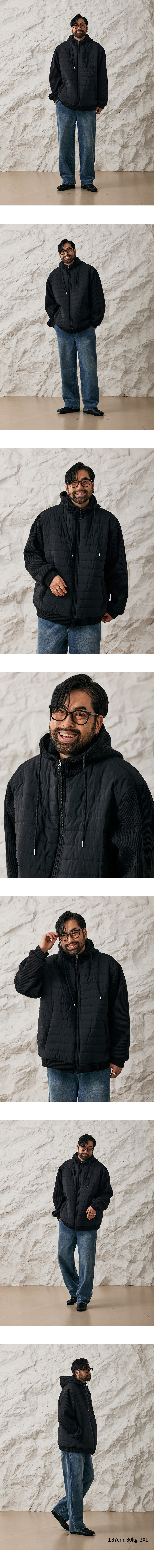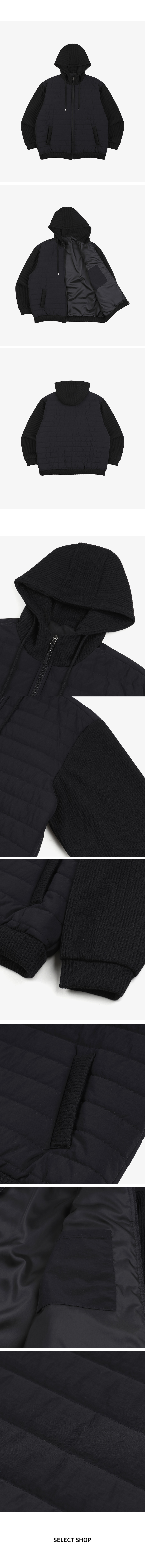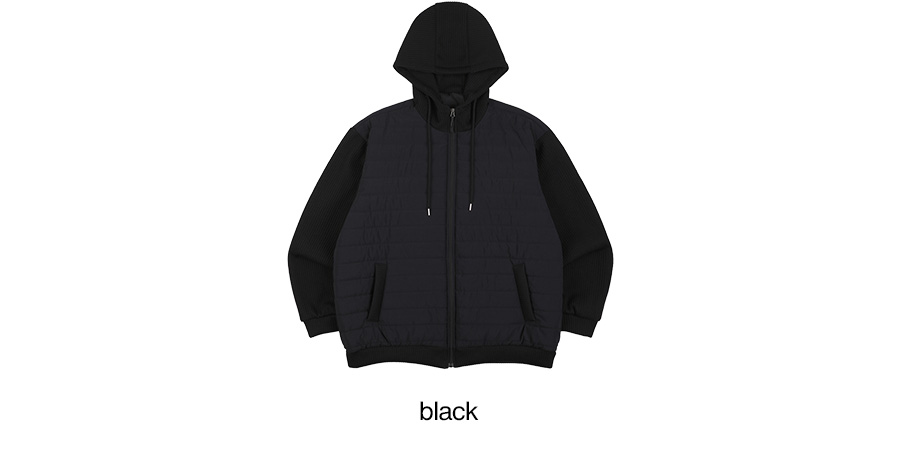 ⦁ 몸판은 누빔 패딩 처리로 뛰어난 보온성을 제공하며 소매와 후드는 니트 짜임으로 배색 포인트를 주었습니다.