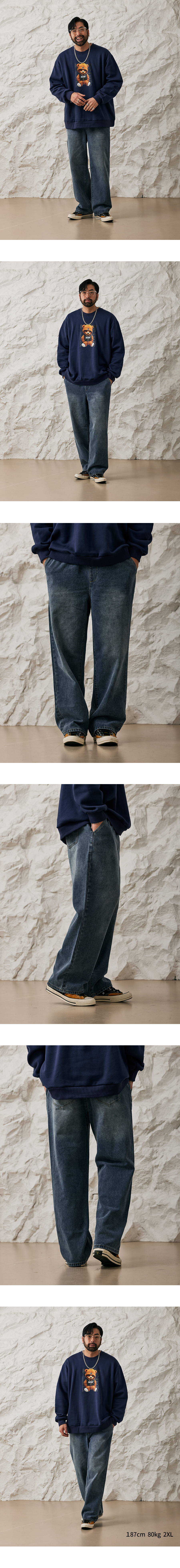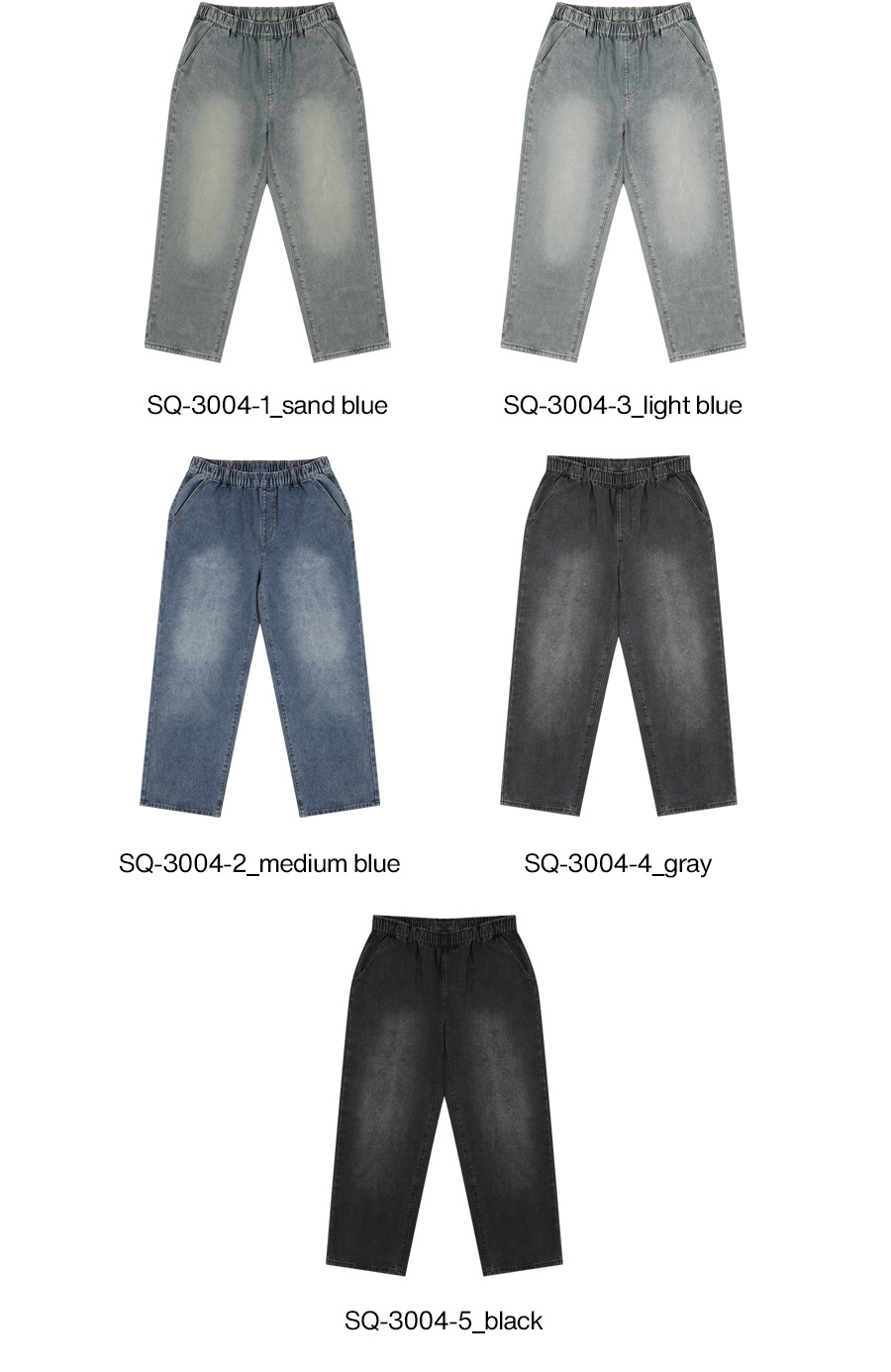 ⦁ 데님 소재이며 워싱이 들어간 디자인입니다. 허리 밴딩과 스트링으로 착용감이 매우 편안한 것이 특징입니다