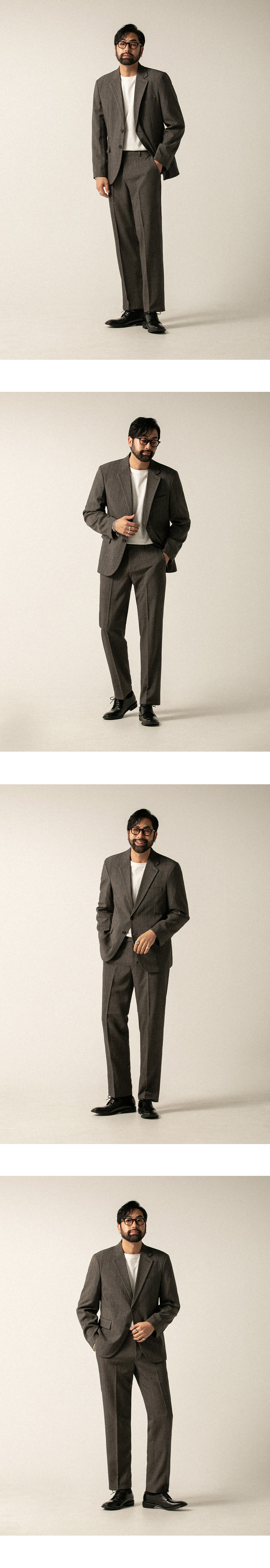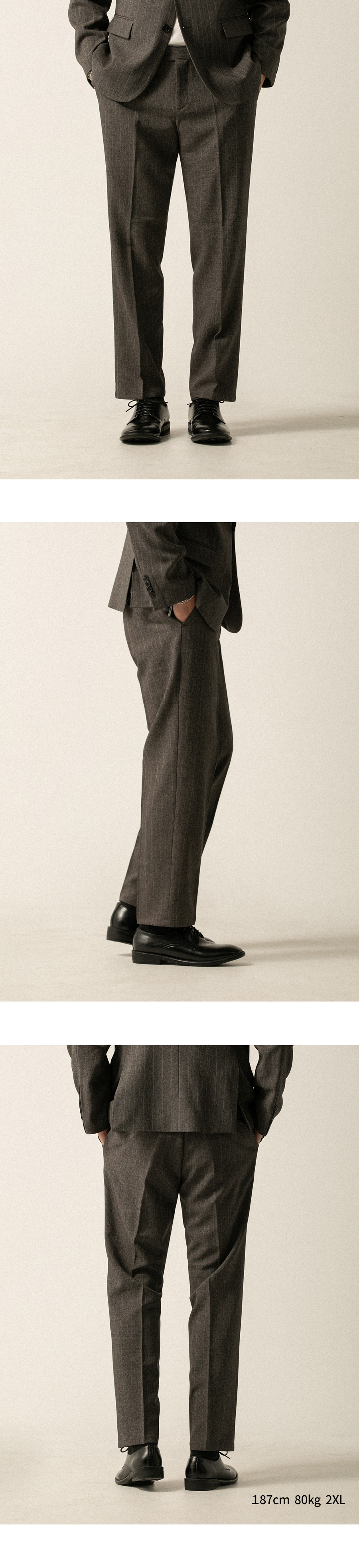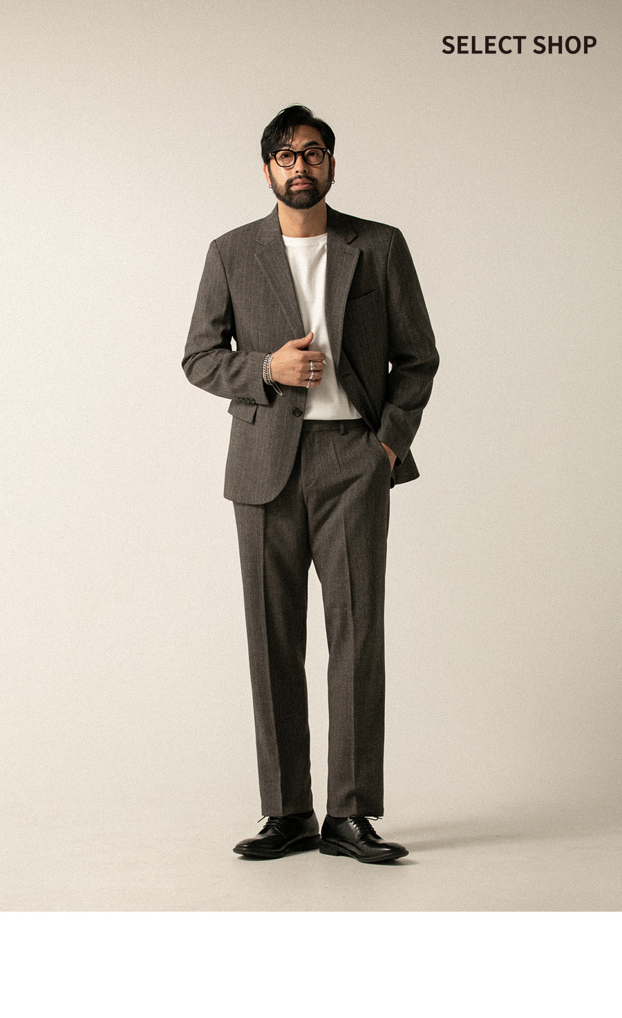 ⦁ 은은한 핀스트라이프 패턴이 돋보이는 클래식한 무드의 일자핏